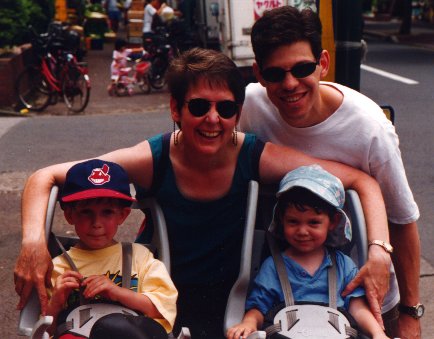 Jeff met me at the airport with his two sons, Andrew (4) and Theo (2), in tow. I took care of some things at the airport, like exchanging money and picking up a 7-day rail pass, and Jeff tried to keep Drew and Theo amused. We got on a train at the airport train station and started the journey to Jeff and Anne's house just outside Tokyo.