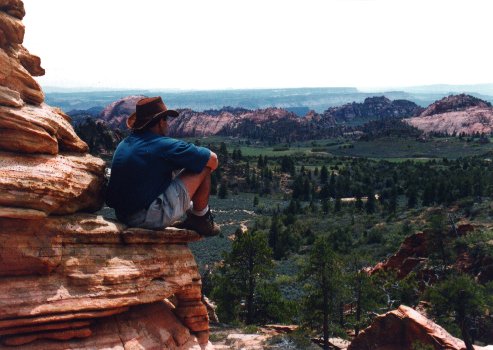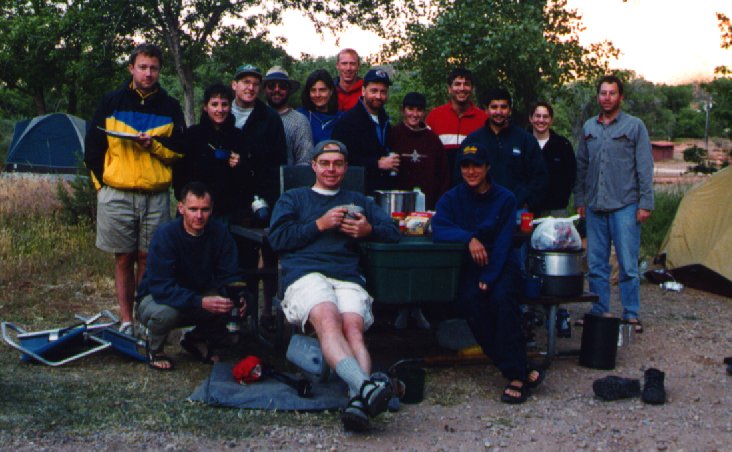 After lunch, I pedaled back into the park and rode the length of the paved portion of Zion, which is the only area on which bikes are allowed. Along the road I stopped at numerous spots to take pictures. It was very convenient to be able to stop in places where there is no room for cars to pull over. By the end of the afternoon, I was back at the camp site and the day hikers returned soon after. The overnight hikers were not too much later either, and we had dinner, as on all the other nights, before sundown. It stayed light out until almost 9:00 p.m. so that really wasn't much of an accomplishment, but it made cooking and cleaning that much easier. Campfire began promptly when cleanup was complete.