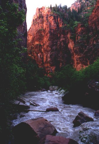 | The Virgin River, raging through Zion |